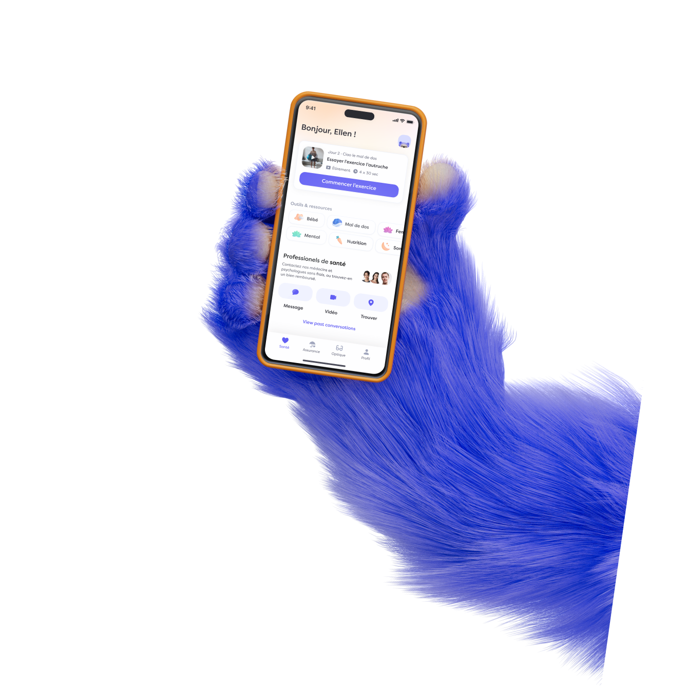 Imaginez votre app de méditation préférée, ajoutez une ligne directe 7/7 vers votre psy ou kiné, et des défis ludiques bons pour votre santé.